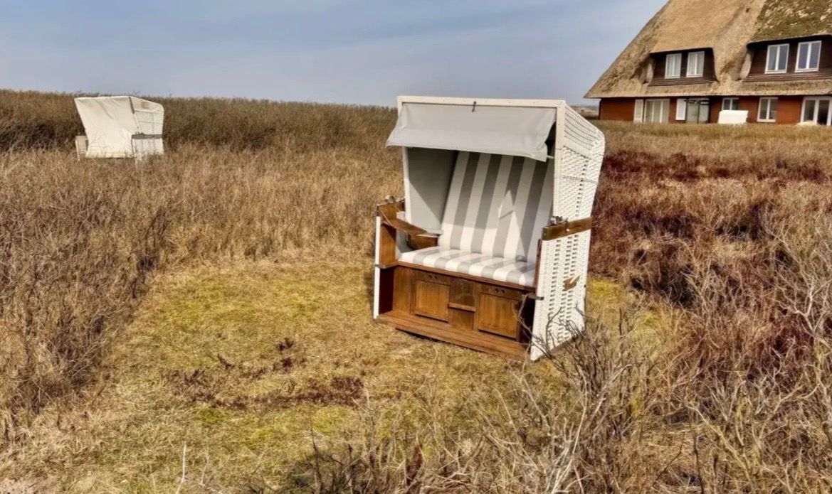 In der Dünenanlage befindet sich ein Strandkorb, der Platz für drei Personen bietet und zur Ferienwohnung gehört. Entspannen Sie beim Blick in die Dünen mit frischer Nordseeluft in der Nase.