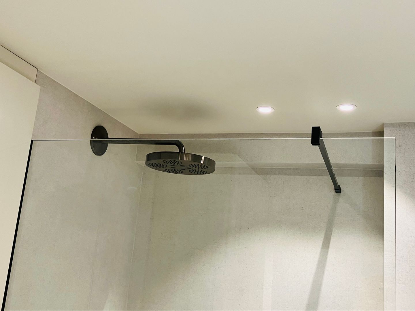 Innenliegend verfügt die Ferienwohnung über ein helles Badezimmer, das mit einer Regendusche ausgestattet ist und nebenbei mit viel Stauraum und Modernität punktet.