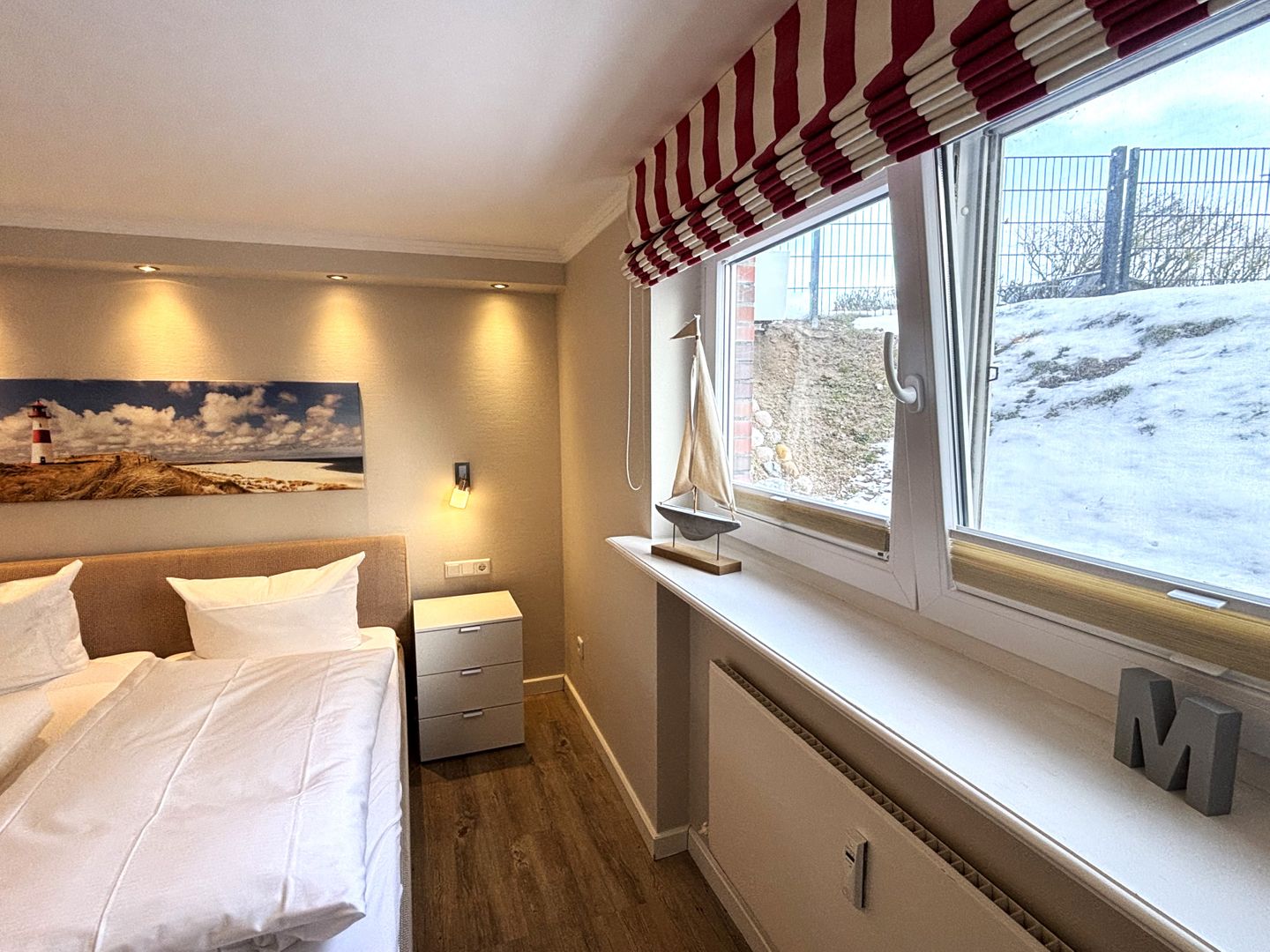 Das Appartement ist für bis zu maximal 4 Personen ausgelegt. Schlafzimmer 1 befindet sich im Erdgeschoss und verfügt über ein Schlafsofa (ca. 140x200cm).