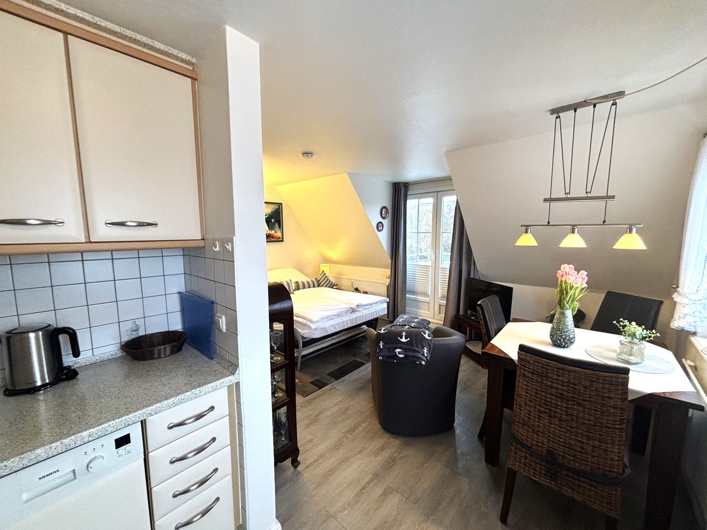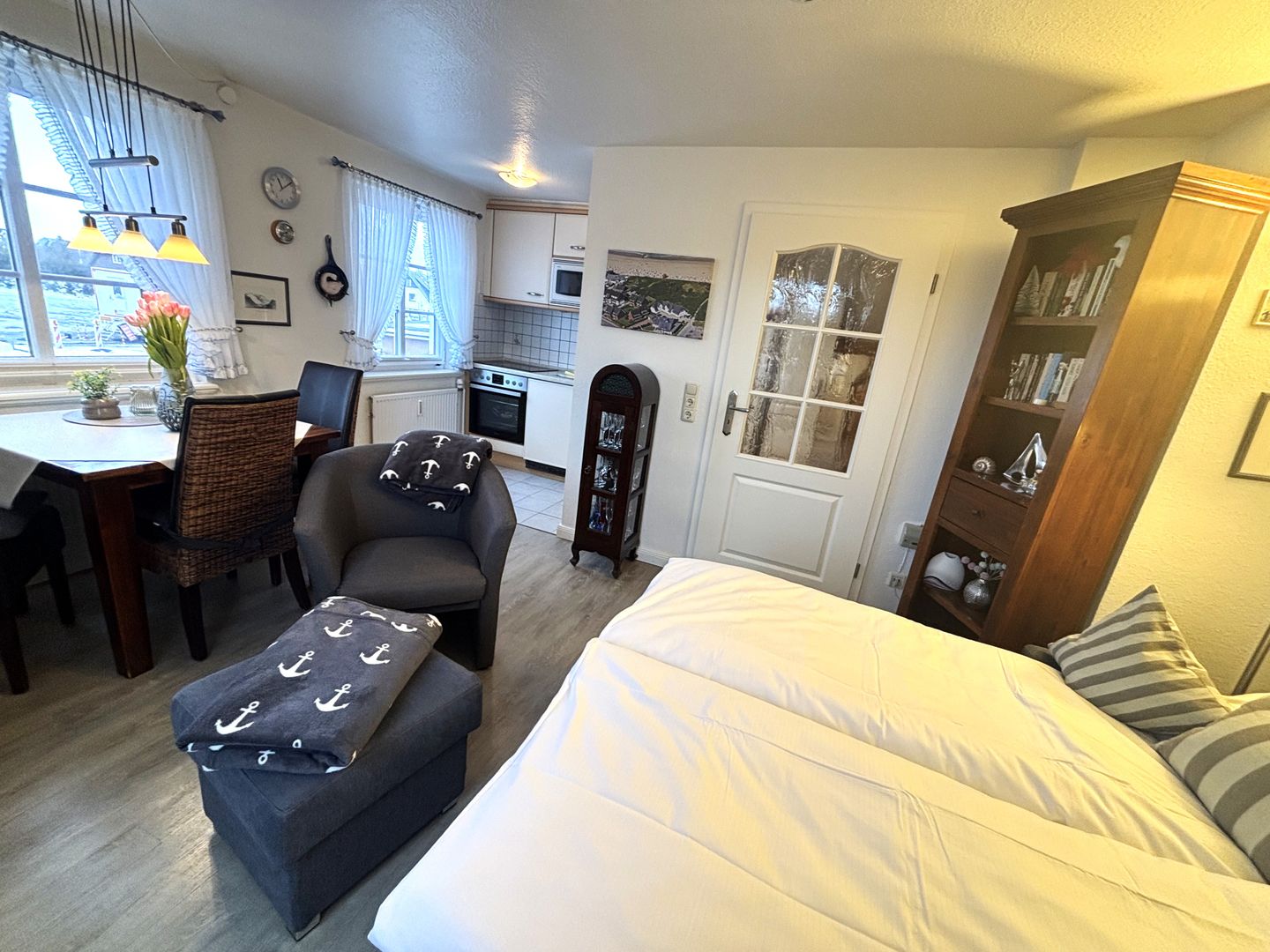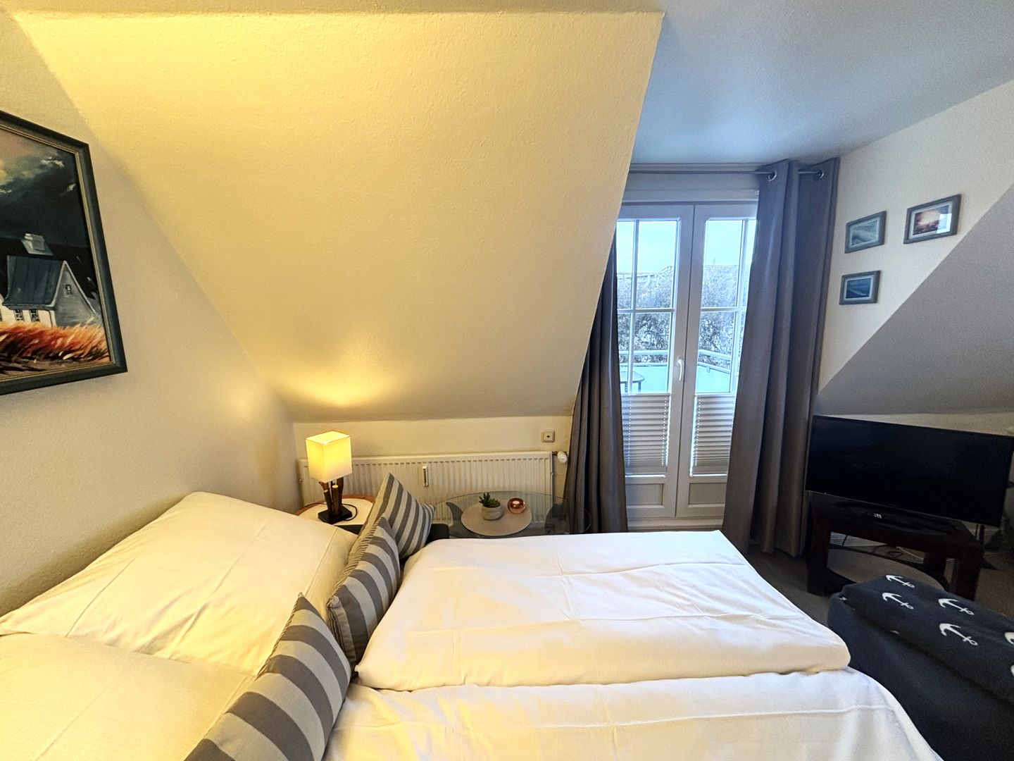 Strandnaher Traumurlaub mit purem Inselgefühl. Hier können Urlauber auf dem Balkon der gemütlichen und hellen 1-Zimmer-Ferienwohnung im Obergeschoss Wind und Wellen lauschen.