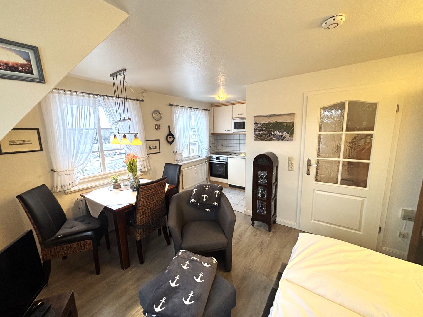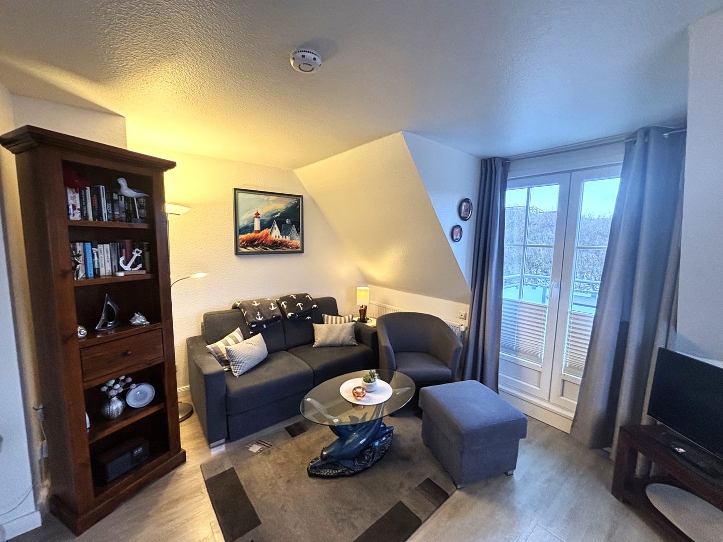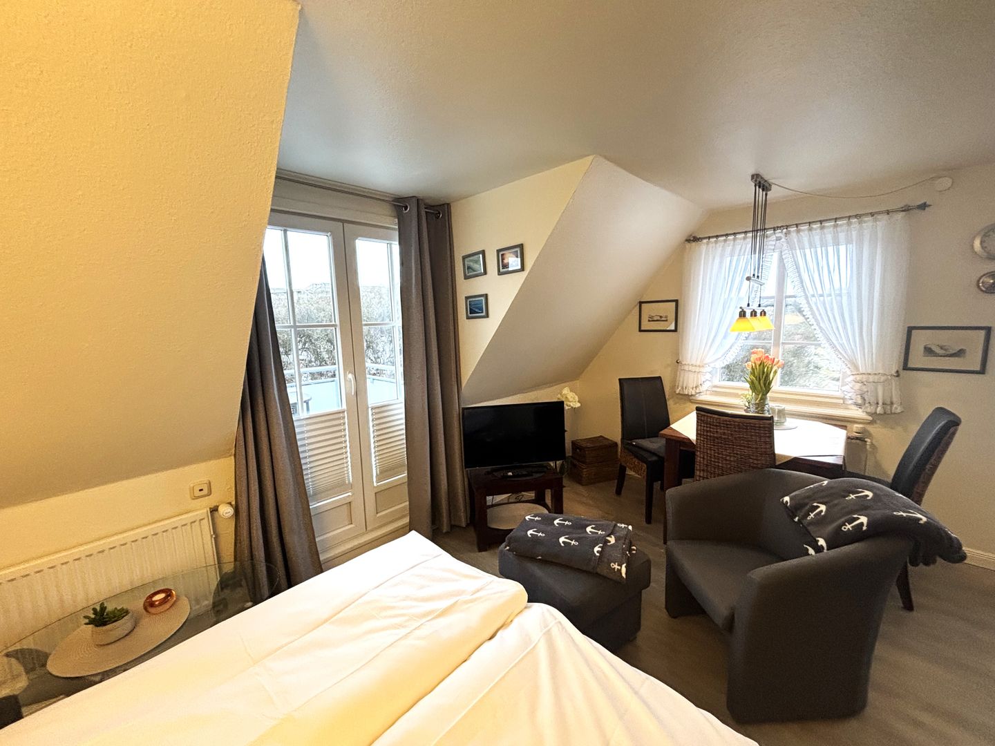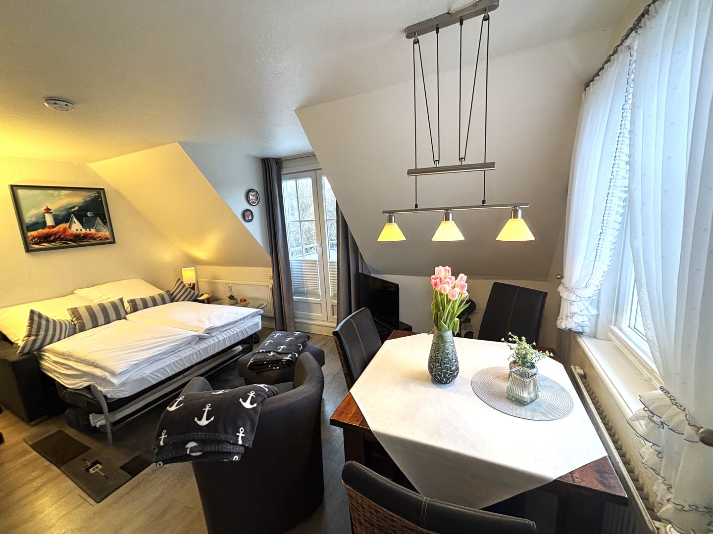 Strandnaher Traumurlaub mit purem Inselgefühl. Hier können Urlauber auf dem Balkon der gemütlichen und hellen 1-Zimmer-Ferienwohnung im Obergeschoss Wind und Wellen lauschen.