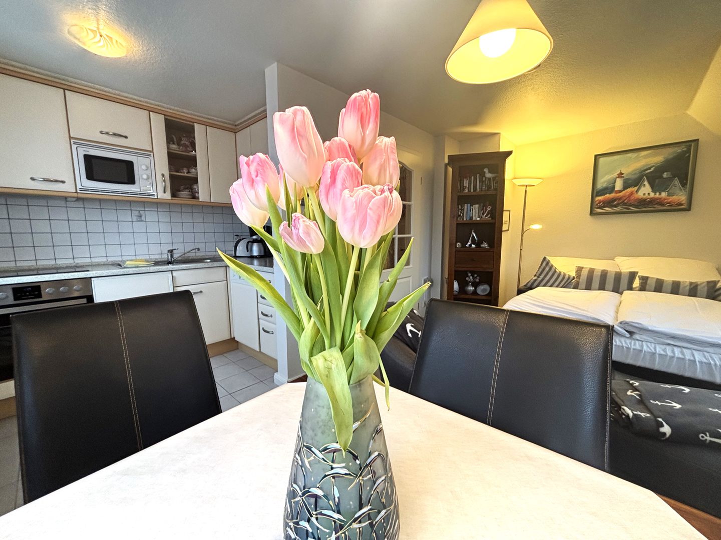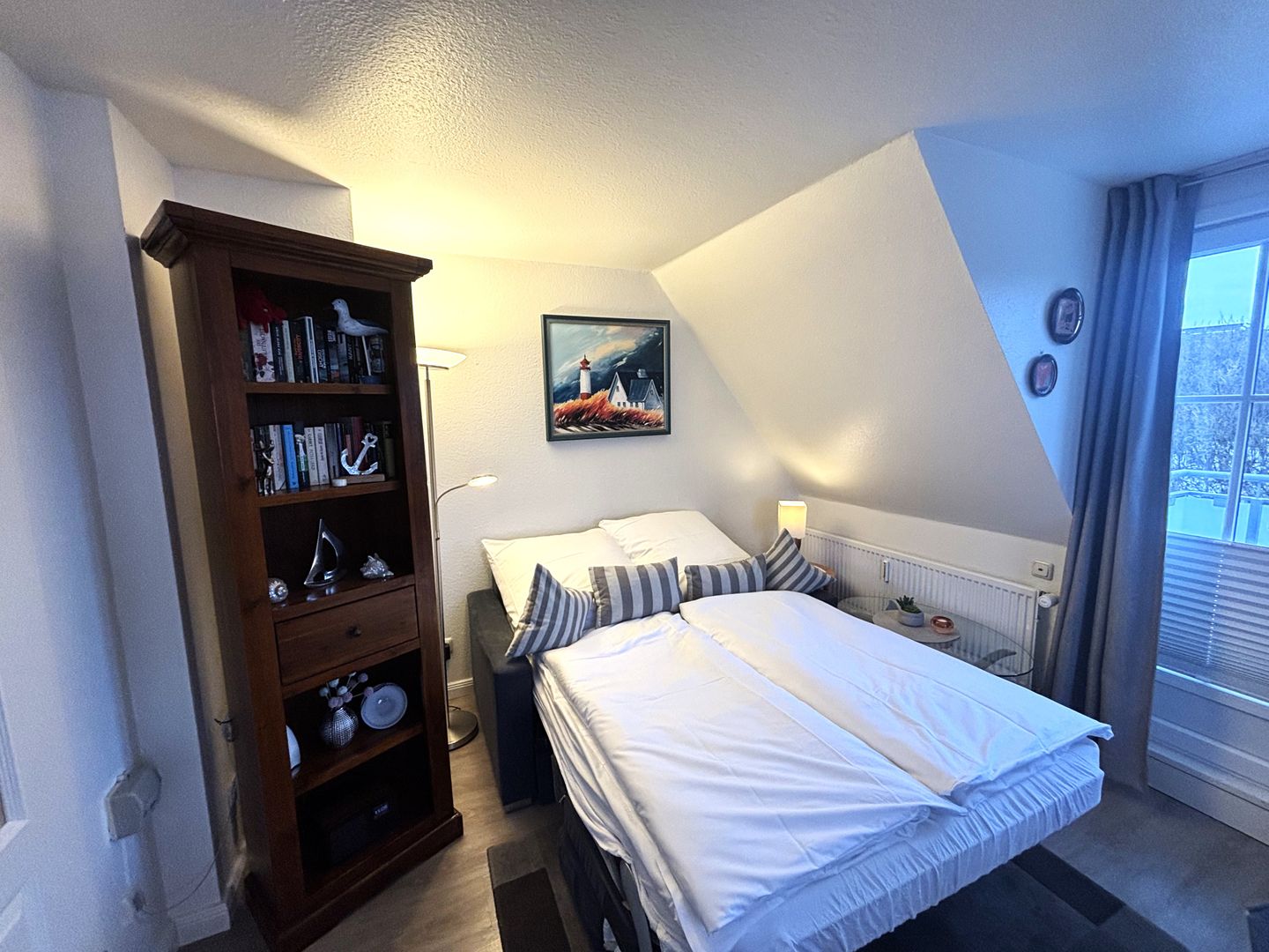 Auf dem möblierten Balkon können Sie die salzige Luft einatmen, das Meer rauschen hören und den Blick auf die Dünen von Wenningstedt genießen.