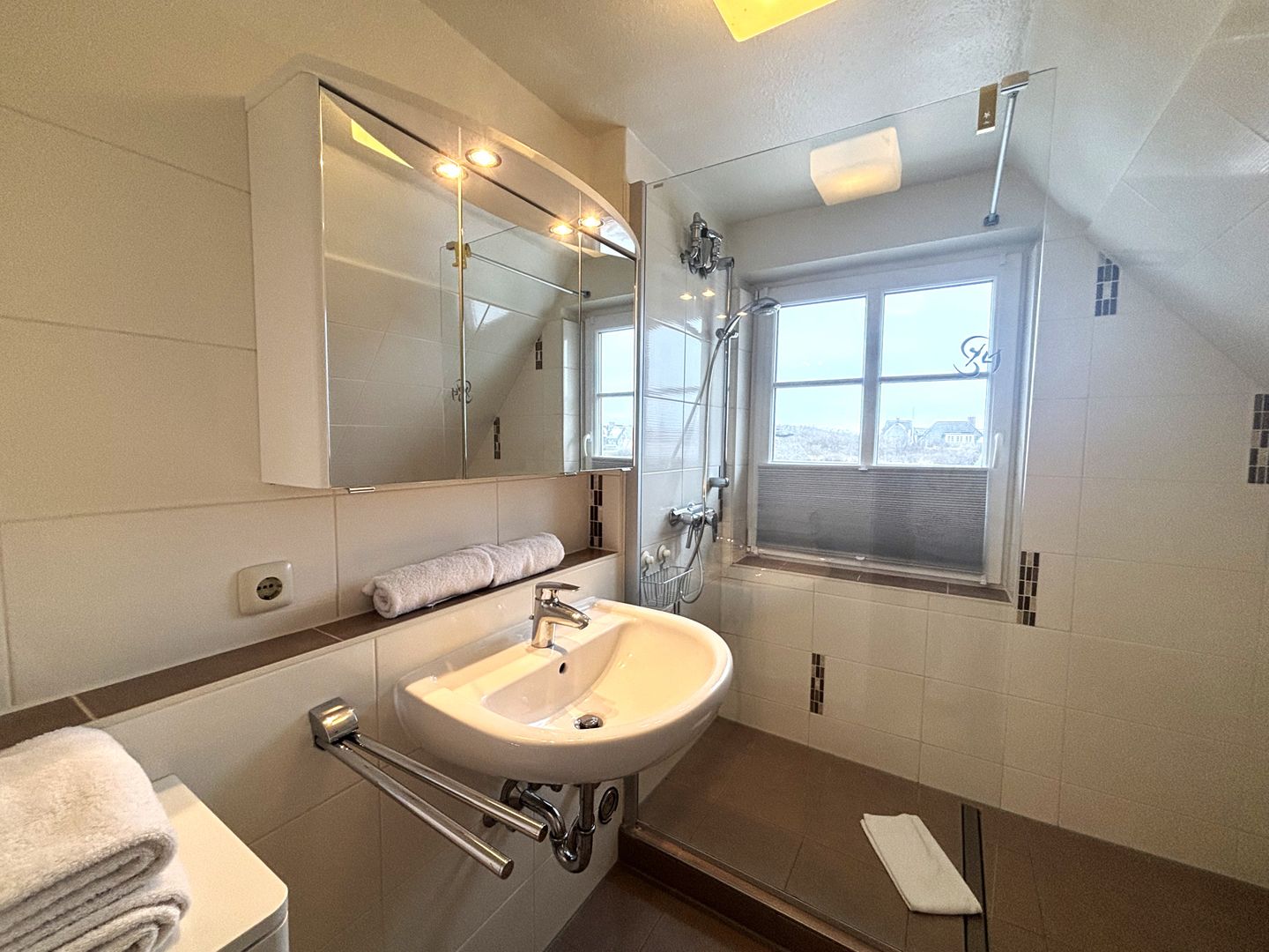 Ein Bad mit Dusche und WC befindet sich im Obergeschoss.