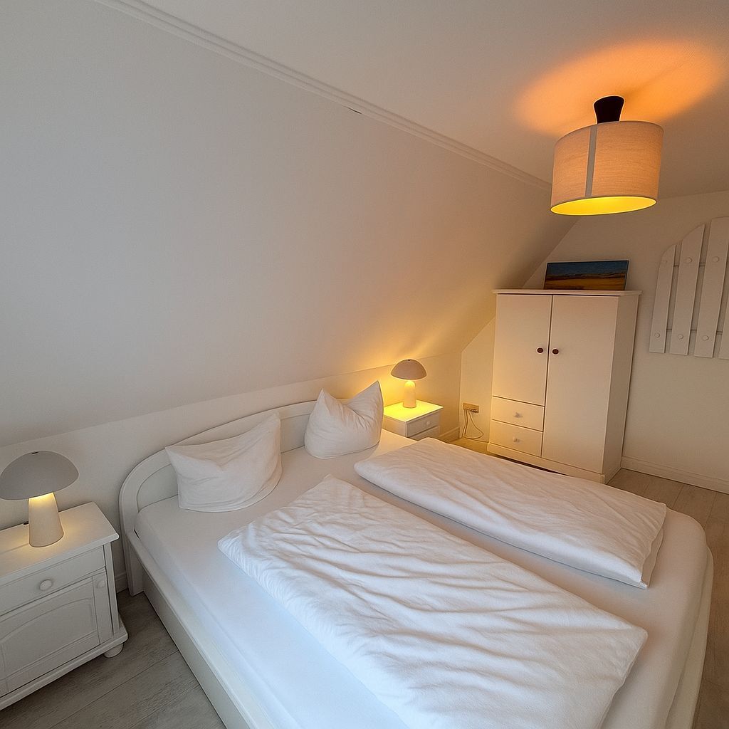 Die Ferienwohnung verfügt über 1 Schlafzimmer und ist mit einem komfortablem Doppelbett ausgestattet und verfügt über einen Kleiderschrank.